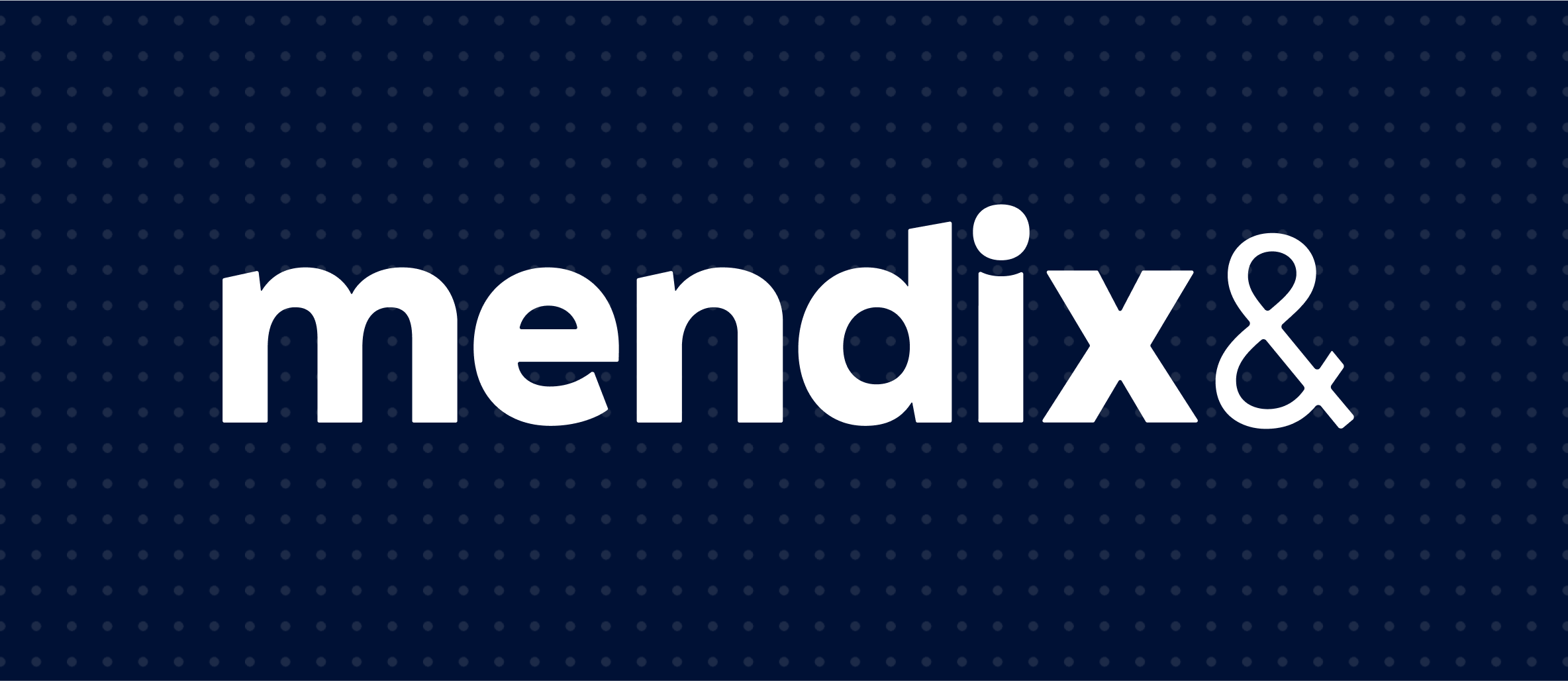 The dot grid adds structure and precision, symbolizing how Mendix brings clarity and control to dynamic collaborations.